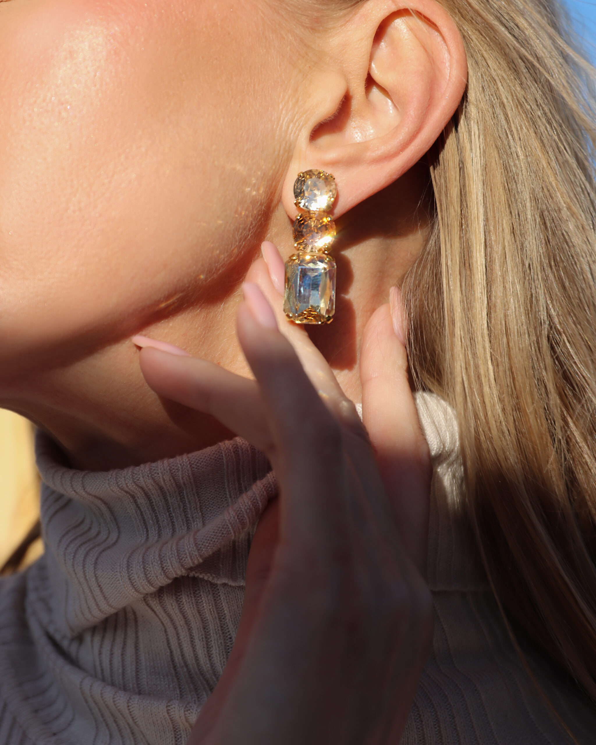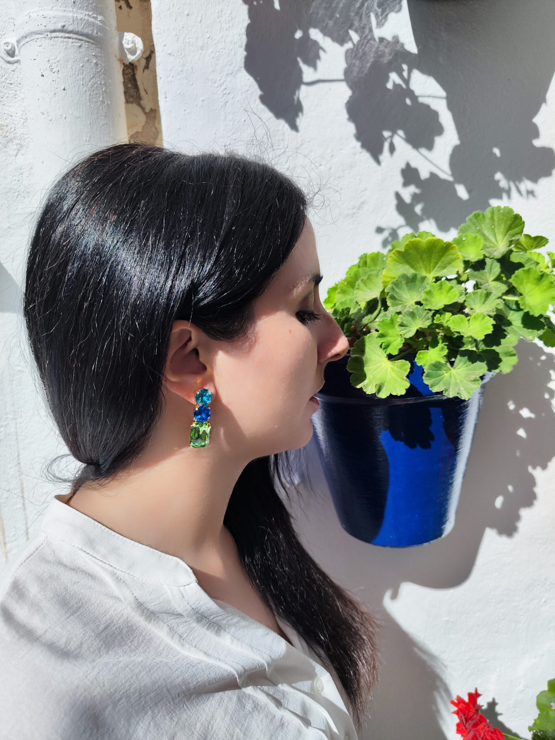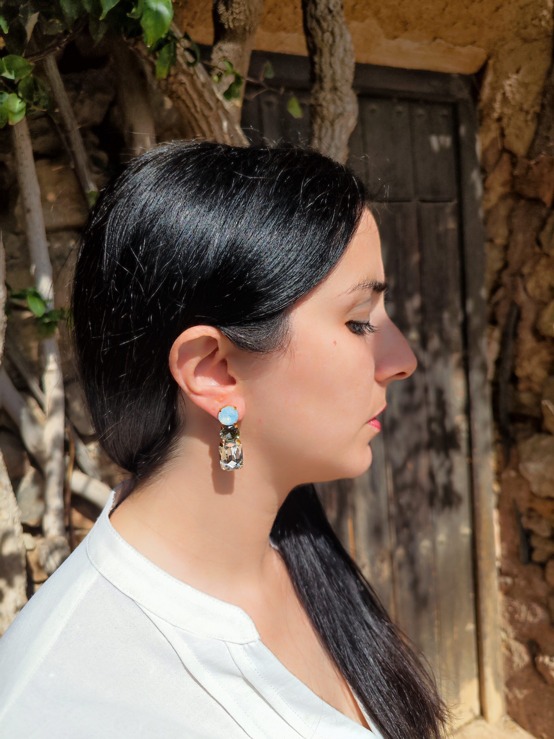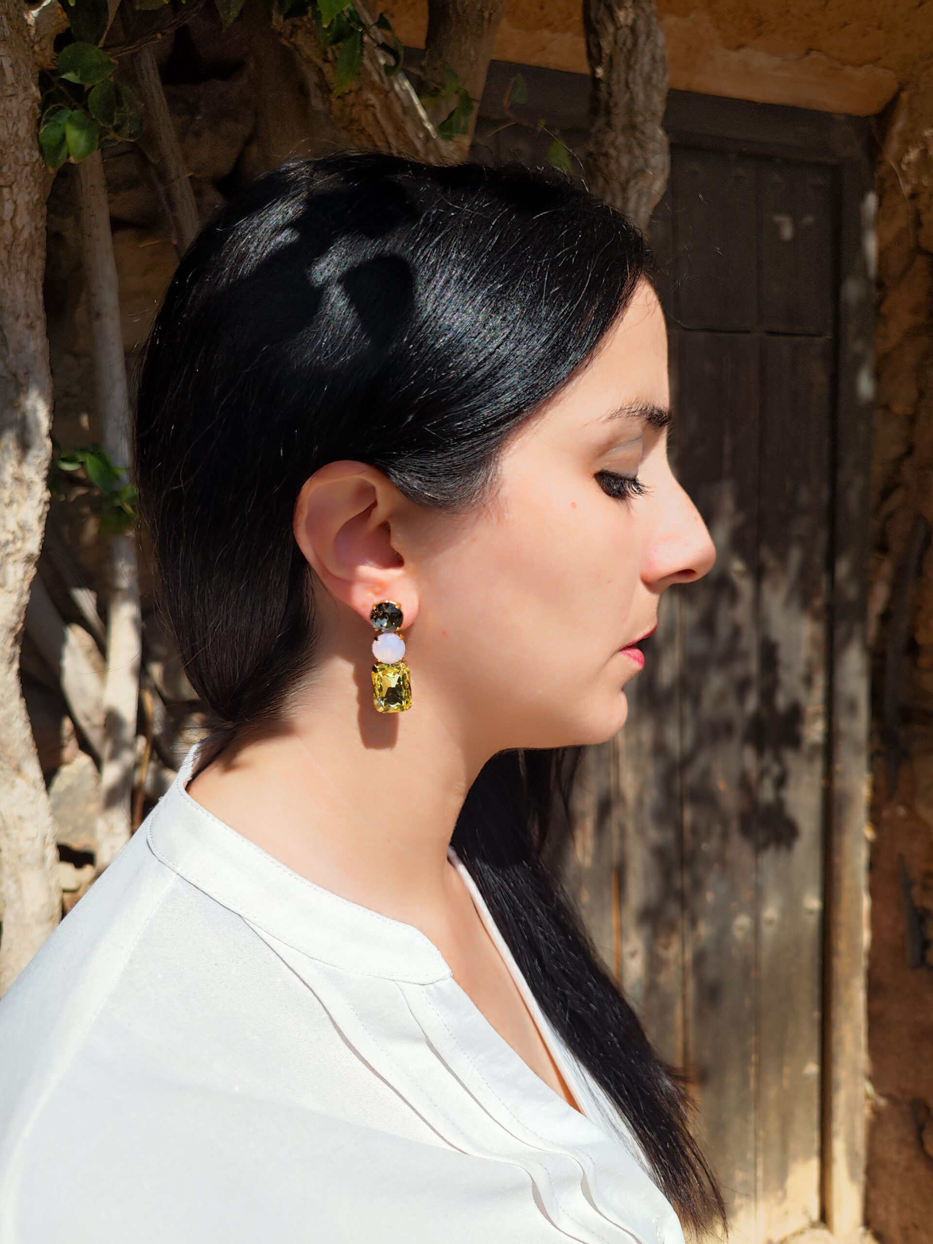 Earrings in brass gold plated 24K, with bohemian crystal stones in different colors